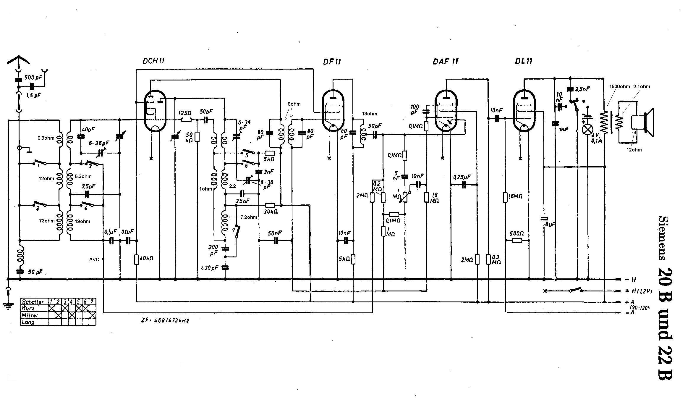 Schému nájdete v knihe Empfanger Schaltungen, Der Radioindustrie, Band: VIII. Tu priložená schéma je z tohto zdroja, doplnená o informácie namerané na prístroji a referencujúce obrázok s konštrukciou cievok.