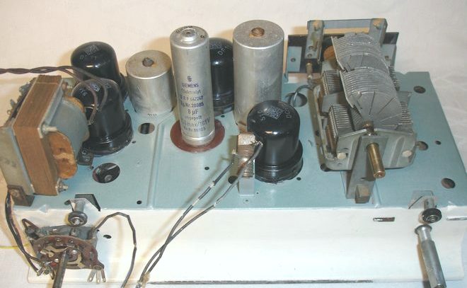 - Svitkové kondenzátory sú obyčajne v poriadku, lebo nie sú vystavené veľkému napätiu. Jedine sa vymenil väzobný kondenzátor 10nF a vložil sa do starej trubičky po kondenzátore, ktorý sa dal jemným nahriatím vybrať. Elektrolyt bol v poriadku, nie je kritický, pokiaľ je dobrý zdroj. Svitkové kondenzátory sú Siemens.