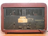 | Leírás | 3+2 csöves, hathangoltkörös, háromhullámsávos (R-K-H vagy R1-R2-K), váltóáramú hálózati középszuper rádióvevok nyomógombos hullámváltóval, ferritantennával, fényezett (R 035 F) fakávában, az elektromosan azonos R 135 F típusú készüléket eltéro formájú kávába szerelték be. |