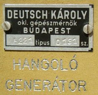 Deutsch Károly gépészmérnök; Budapest, F 221, Hangoló generátor