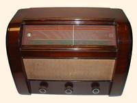 Description | The version, of identical structure but built into polished wooden cabinet with modified front panel, of the Orion 311 type, 3+2-tube, three-band (SW-MW-LW), mains-operated medium super radio receiver, made in the Telephone Factory. |