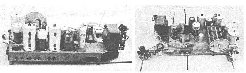 A keverőfokozat behangolásnál nehézséget okoz a sokféle tekercs és trimmerkondenzátor megtalálása. A készülék, a rövidhullámú sáv és a helyi adók kivételével sávszűrős bemenetű (alsó kapacitív csatolású). A közép- és hosszúhullámú bemeneti tekercseket, valamint a középhullámú rezgőkörök beállító kondenzátorait árnyékoló burában helyezték el (3. fotó). A többi tekercs elhelyezése az alulról készített képen látható (4. fotó). A hullámváltó mögött és mellett vízszintes bakelitlemezeken az oszcillátor tekercseket helyezték el. Ezeket bedobozolt állapotban is lehet hangolni. Felülről lefelé: Bp. I. és Bp. II., balról jobbra: hosszú, közép és rövid oszcillátor (a trimmerek a tekercsek mellett). Oldalt függőleges lemezen, felülről lefelé: rövid, Bp. I., Bp. II. modulátortekercs és KF szívókör.