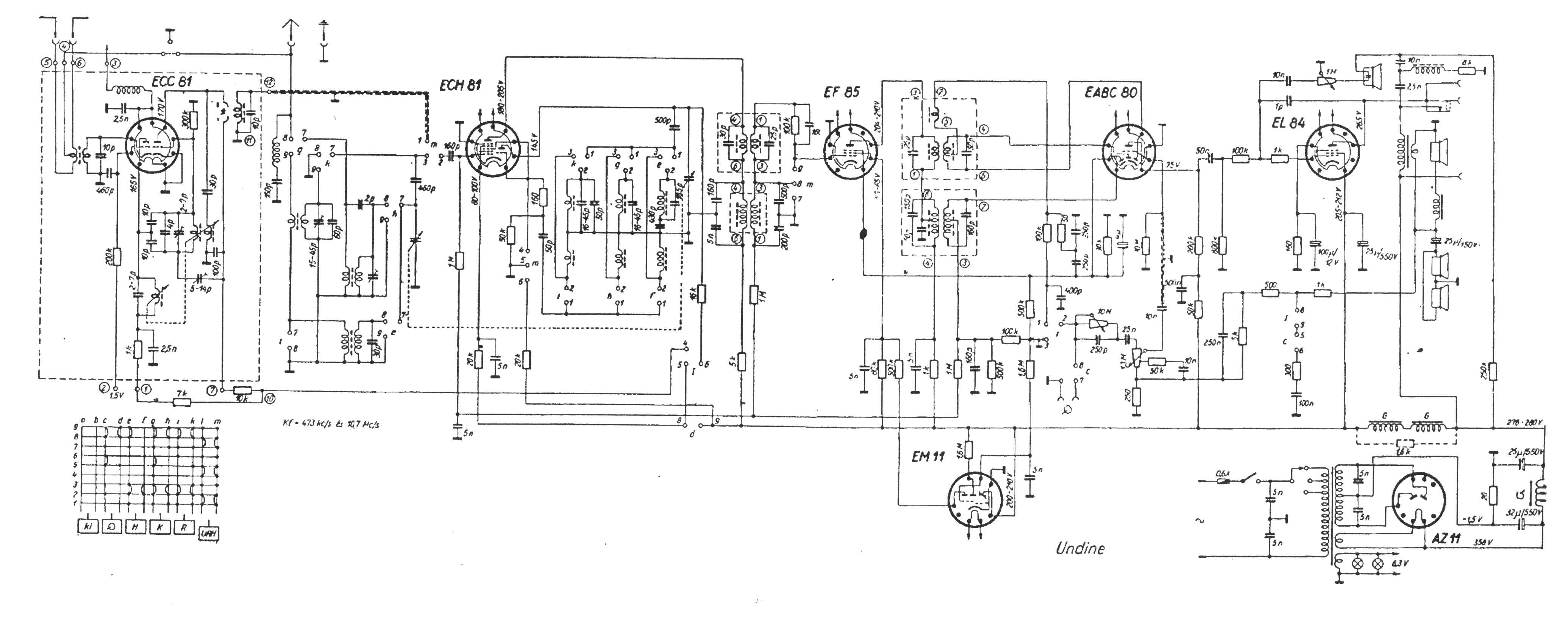 ECH 81 - AM oszc. és keverő URH I.KF erősítő, (oszc. rácsáram: 250-300 µA)