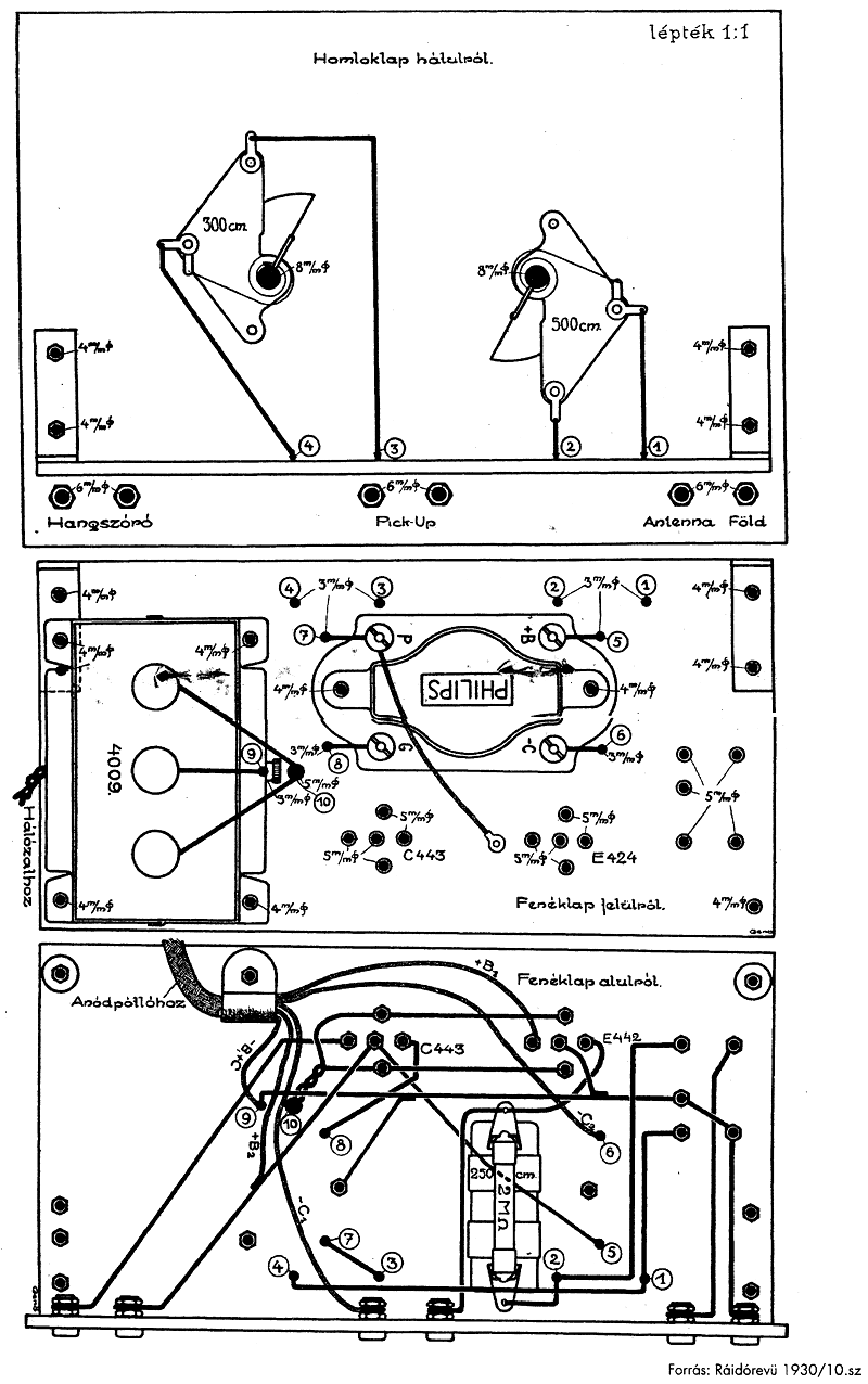 Az audion után transzformátoros csatolásban következik a végerősitőcső. Készülékünkbe a C443 csövet használtuk végerősítőnek.