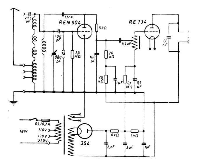 A szerkezet különlegessége, ez is Telefunken specialitás, a hátlap rögzítésén kívül nem tartalmaz egyetlen csavart sem, minden csőszegecsekkel, fülekkel van rögzítve, illetve forrasztással. A színes acetát szigetelésű huzalozás természetesen, alulra került, egyedül a hálózati trafó vezetékei kaptak prespáncső borítást. Az ellenállások Always, a kondenzátorok csillámszigetelésű kocka Telefunkenek és Ericsson, a nagy blokktömb is Ericsson gyártmány. Az osztrák verziónál Sator, Kapsch & Schöne gyártmányok. Visszatérve a rezgőkörre ez a legérdekesebb rész. Egy lapos variométernek van kialakítva, az álló rész és az elforduló rész is két félkör alakú lapos tekercset tartalmaz, melyeket egymás fölé lehet elfordítani. Az elforduló részre van plusz ráépítve szintén elforduló kivitelben a visszacsatoló tekercs. Ez egy háromszög alakú bakelitlapra szintén lapos tekercsként van kialakítva. Állítása a hangológomb alatt a kisgombbal történik. Az egész tekercsrendszer csak középhullámra van kialakítva, de úgy hogy a BP ll-t is vegye. A rezgőköri tekercsek állítása a forgó kondenzátorral együtt történik, így egyenletes visszacsatolást lehet biztosítani az egész sávon. A hangoló tekercsek színes pamutszigetelésű huzallal vannak bekötve, az egész egy nagyon érdekes szerkezet. Mellé került a kisméretű hangfrekvenciás trafó, mely csak autotrafónak van kialakítva. A kapcsolástechnika természetesen a legegyszerűbb korai kapcsolás, a német kapcsolások könyvéből vettem át. Az egyutas anód egyenirányítás, viszonylag alacsony értékű szűrőkondenzátorokkal némi bugást is megenged, amit ugyan a korabeli hangszórók kevésbé sugároztak le. Az audion, a végcső is trióda, de a végcsőnél lehetőség van már pentódát is alkalmazni, (segédrács) oldalcsavaros kivitelben. A hálózati trafó többféle feszültségre is átkapcsolható, kisméretű, és érdekesség, a későbbi Diadalban is ugyanezt a trafót használták. A trafó mellé egy anód biztosíték is került, ezt abban az időben a legkisebb típusoknál is fontosnak tartották.