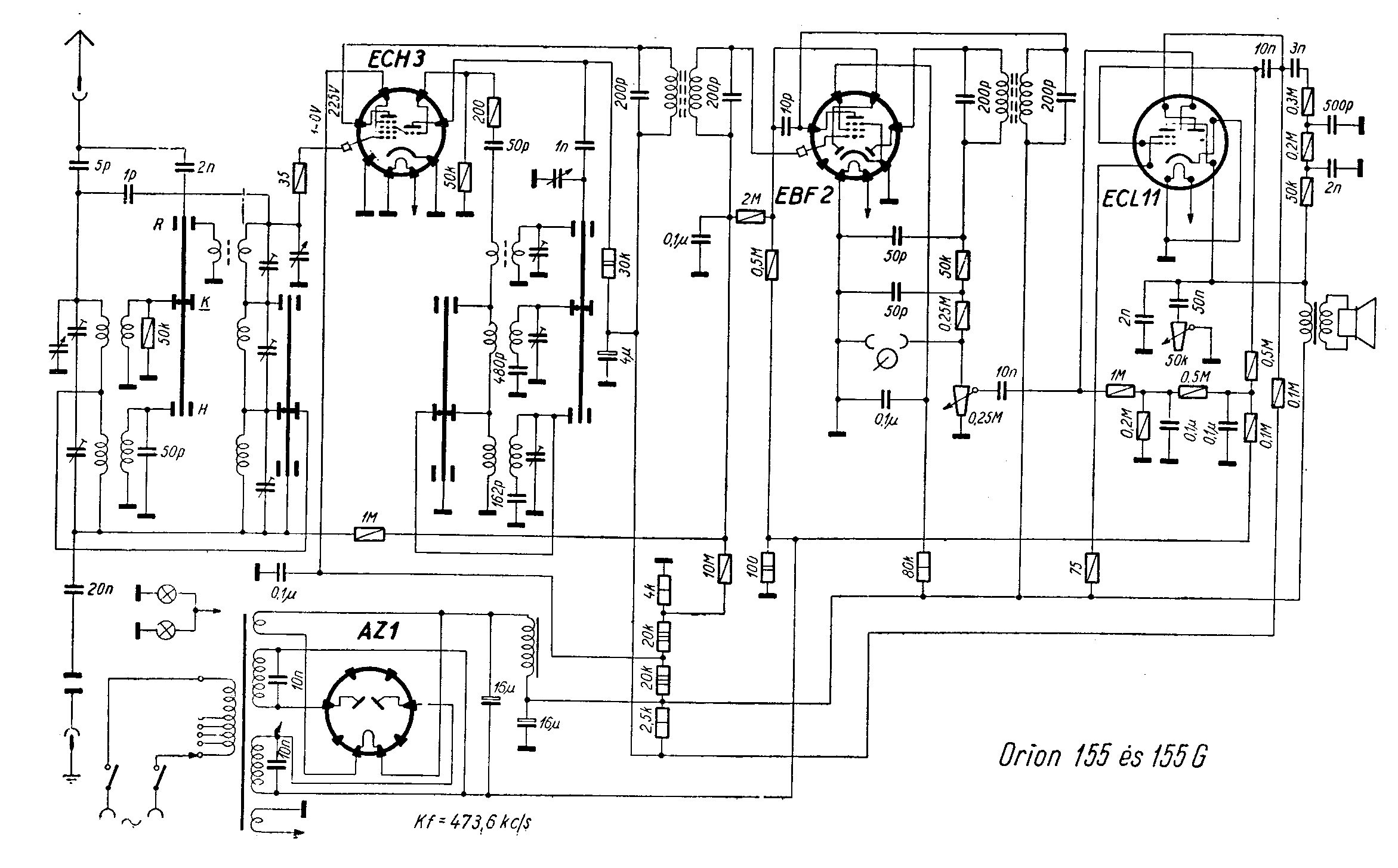 A szokásos kétdiódás demodulátor fokozat után a hangfrekvenciás jel az ECL 11 trióda rácsára jut. A két csőrész anódja között negatív visszacsatolást alkalmaztak, a hangszínszabályozás a végcső anódján vágja a magasabb hangokat.